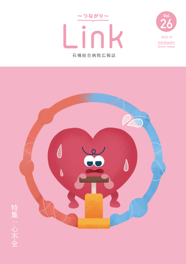 石橋総合病院では患者さんの医療に対する知識を深めてもらうとともに、当院の取り組みを発信する目的で広報誌「Link」を定期的に発行しています。令和7年8月発行の最新号では「心不全」をテーマに特集しています。