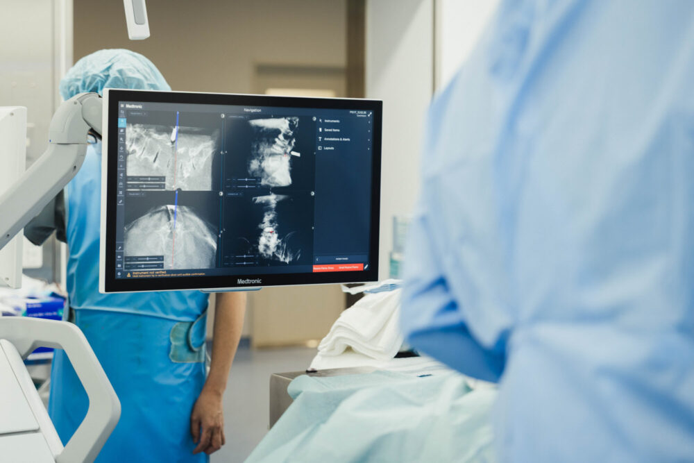この2つを導入したことにより、神経や骨への損傷リスクの低減が期待されるほか、透視回数の削減による放射線被ばくの低減、さらには手術時間の短縮にもつながります。本システムを活用し、より安全で低侵襲(体への負担が少ない)な脊椎手術の提供に努めてまいります。